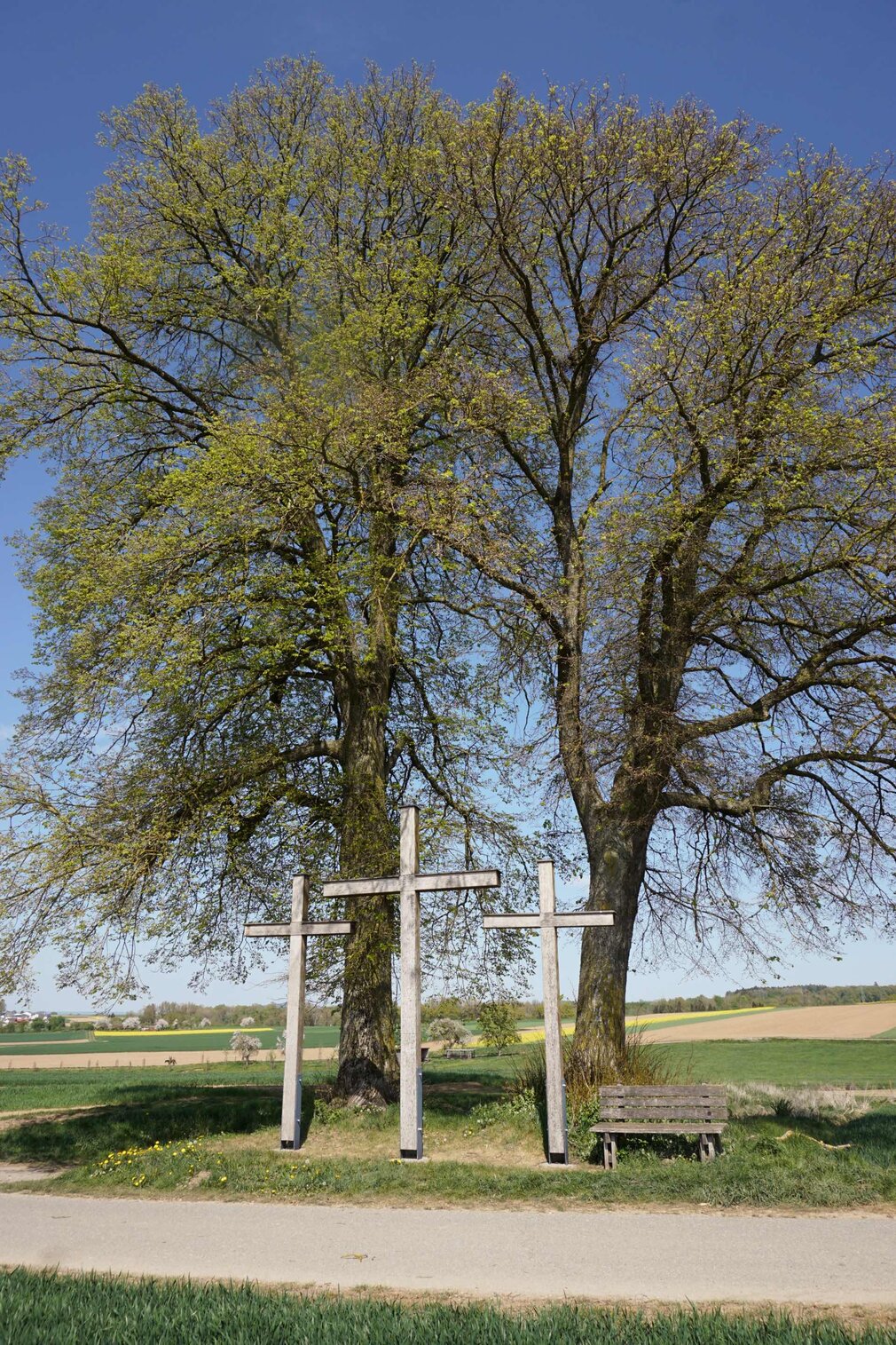 Diesem folgen wir entlang von duftenden Wiesen- und Ackerfeldern bis nach Großtissen. Nach der dortigen Dorfkapelle biegen wir links ← ab in Richtung Kleintissen. Am Ortsende von Großtissen, auf Höhe eines Spielplatzes, fahren wir rechts → und verlassen den Ort.