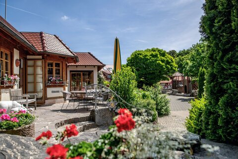 Wir folgen der Beschilderung (weißes Schild mit grüner Schrift) vor der Tourist-Information circa 200 m Richtung Weingarten/ Bahnhof. Bei der Unterführung biegen wir rechts → ab und halten uns an die Ausschilderung Richtung Wilhelmsdorf.