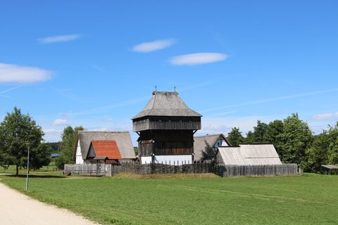 Weiter geht es bis zum Waldrand. Hier halten wir uns leicht links ← und folgen dem Weg für 4 km bis nach Dürmentingen. Dieses durchfahren wir auf der Hauptstraße, biegen in die Bahnhofstraße ein und fahren weiter an Burgau vorbei auf der Straße nach Hailtingen.