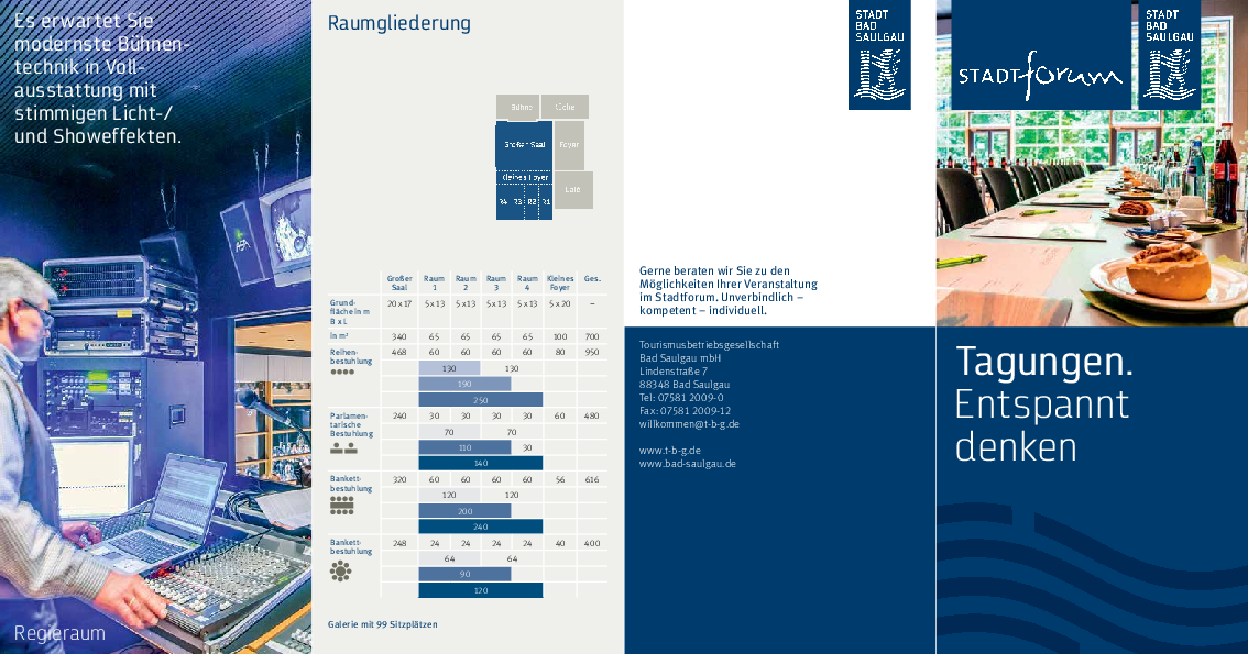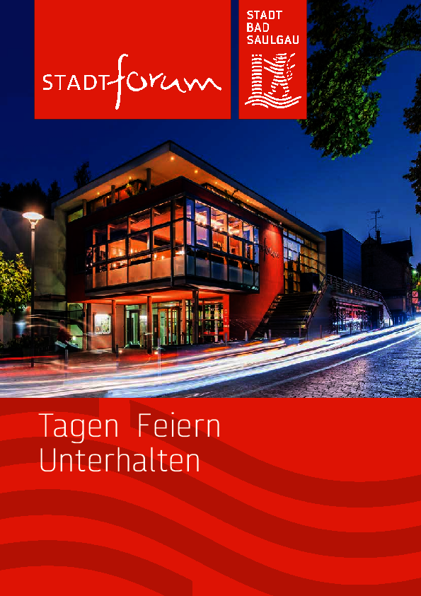 Planen Sie eine Tagung, eine Firmenveranstaltung, ein kulturelles Event oder eine Hochzeitsfeier? Das Stadtforum Bad Saulgau bietet die idealen Voraussetzungen für jede Art von Event. Dank des flexiblen Raumkonzepts, das sich perfekt an Ihre Bedürfnisse anpasst, eignet sich das Stadtforum für private Feiern ebenso wie für Großveranstaltungen mit bis zu 950 Gästen.